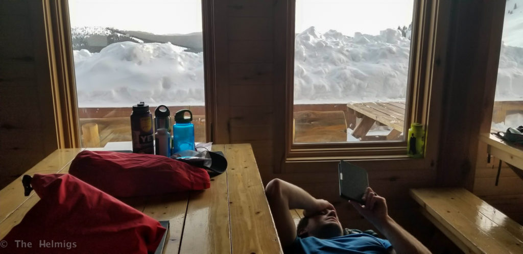 The hut was a site for sore eyes after blasting wind, snow and cold for the last section! We settled in for the first night with less-than-stellar hut partners. For those that don’t know, these 10th Mountain huts are available to the public for a small fee. Most of them are rented per person, dorm-style. Typically, you end up with great folks that share your same interests!