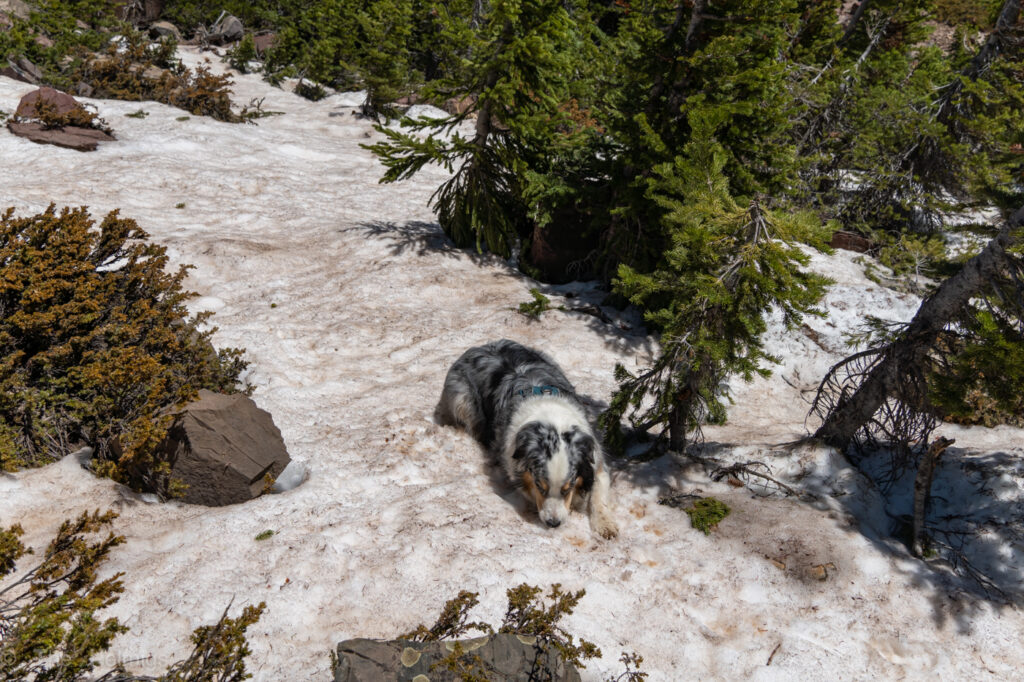 What a beautiful hike! But it wasn’t a complete success… poor little Moz shredded the skin on her front paw pads. She has done this a few times, and really it wasn’t too bad this time, but still a surprise because this used to be a real short hike for her. She’s really starting to show her age!
