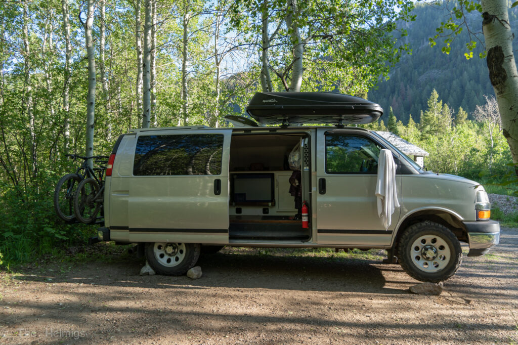 We set out for a long weekend at the Difficult Campground in Aspen. We hit the road around 2:30pm on Thursday and landed here to site 30, our reserved site for 3 nights just south of Aspen – some place warm, where the beer flows like wine & the beautiful women instinctively flock like the salmon of Capistrano! Well… at least it was warm!