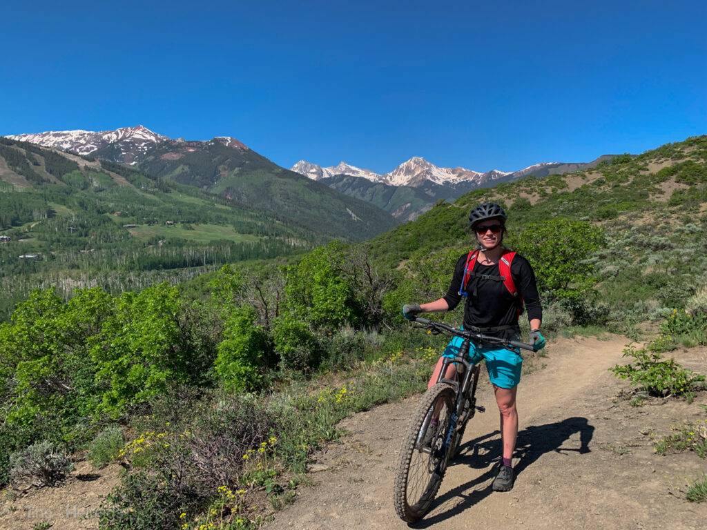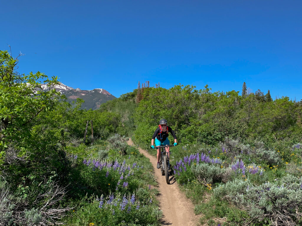Friday we took off for Snowmass to ride the Rim Trail Loop. It was our biggest ride yet since our respective injuries last Fall. 11 miles round-trip and +1,700ft. When we got to the “trailhead” (the Snowmass rec center parking lot), we realized there was a big event going on – Ragnar – a long-distance team relay race. At the start we were concerned they would be running the same trail we were, but we set off anyways and glad we did.