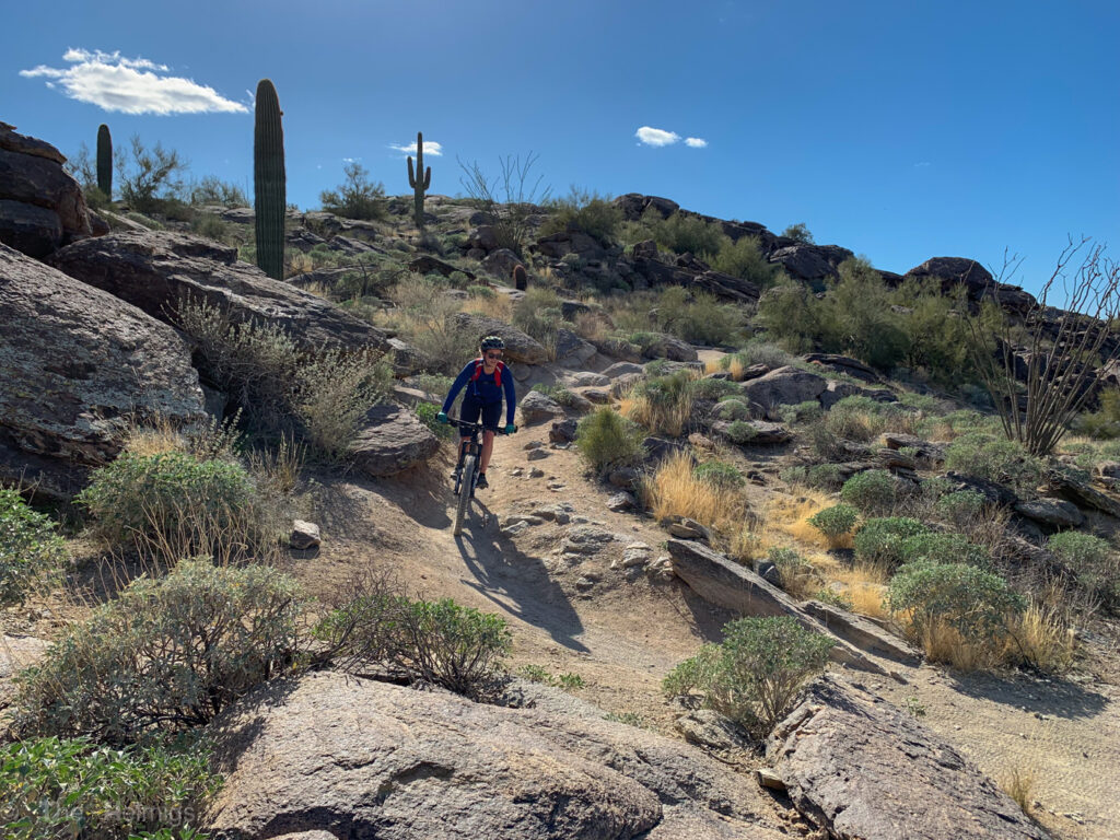 Our first ride in Phoenix was at South Mountain Preserve, basically an out-and-back on the National Trail. Andrea wasn’t a fan – it was pretty technical up and down. I enjoy tech, so I had a pretty good time. This was a ~10mi ride with 1040ft elevation gain.
