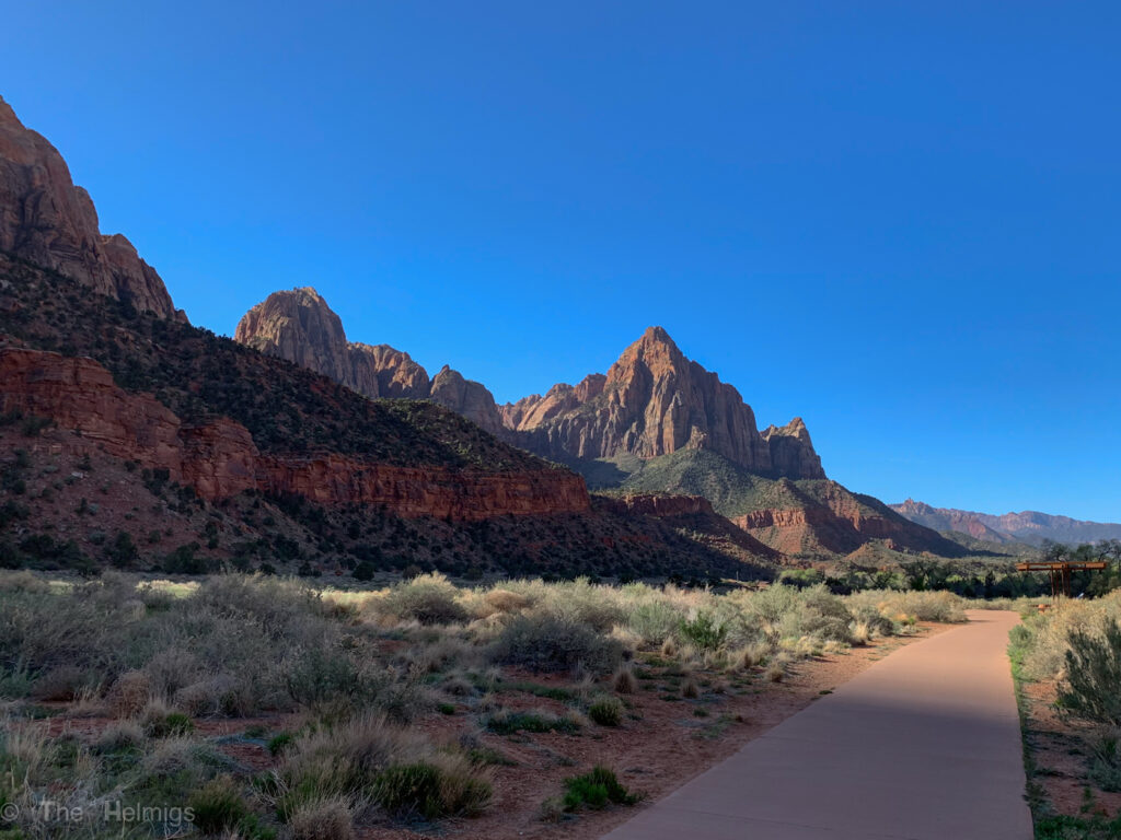 Some years back, Zion implemented a shuttle system in the main canyon – today you can’t drive in the canyon at all. The shuttle sets off from the visitor center, which is just a short walk from the Watchman campground.