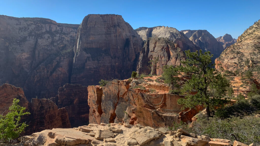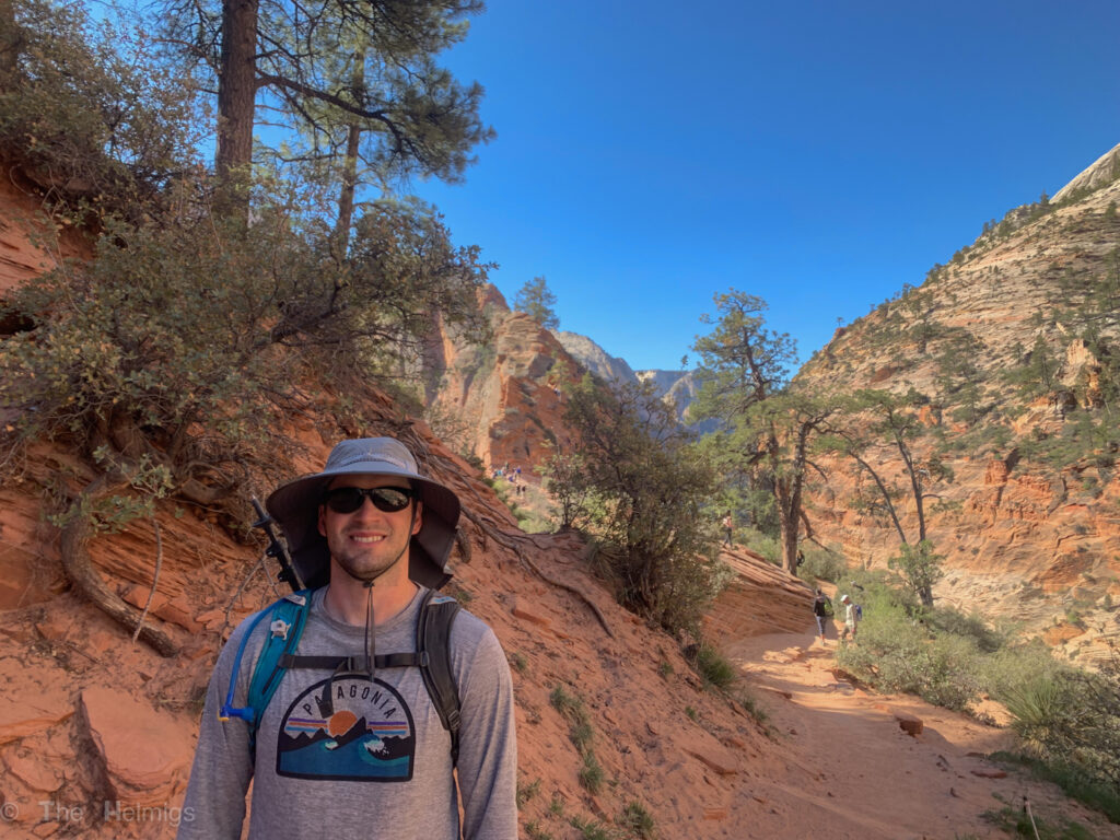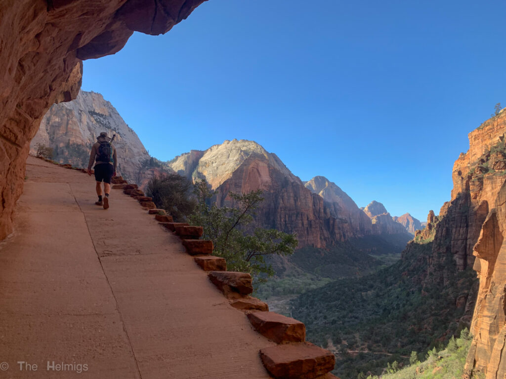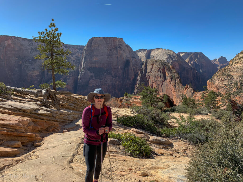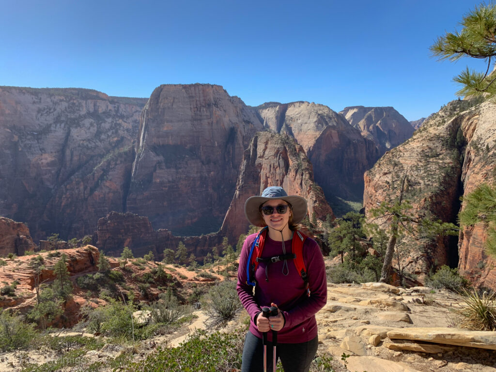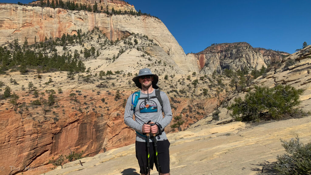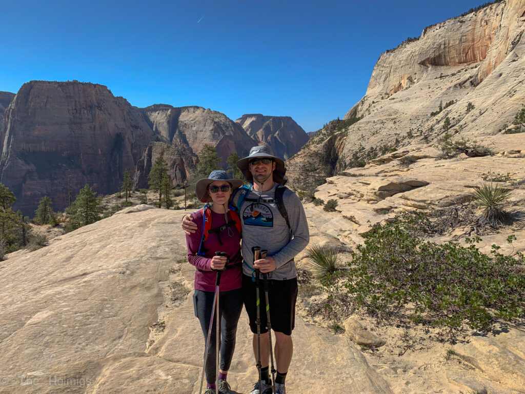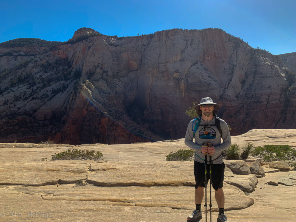 Later in the week we went up to hike Observation Point. A couple years before this trip, a rock slide demolished all of the trails up from the valley floor on the east side of the canyon. These trails are still closed off – but you can go around to the top and hike from there. However, it’s a little more difficult due to limited parking. We ended up opting to take a shuttle from Zion Ponderosa Ranch Resort – it was only $7/person in early 2022 and eliminated the stress of so many people trying to park at a tiny trailhead.