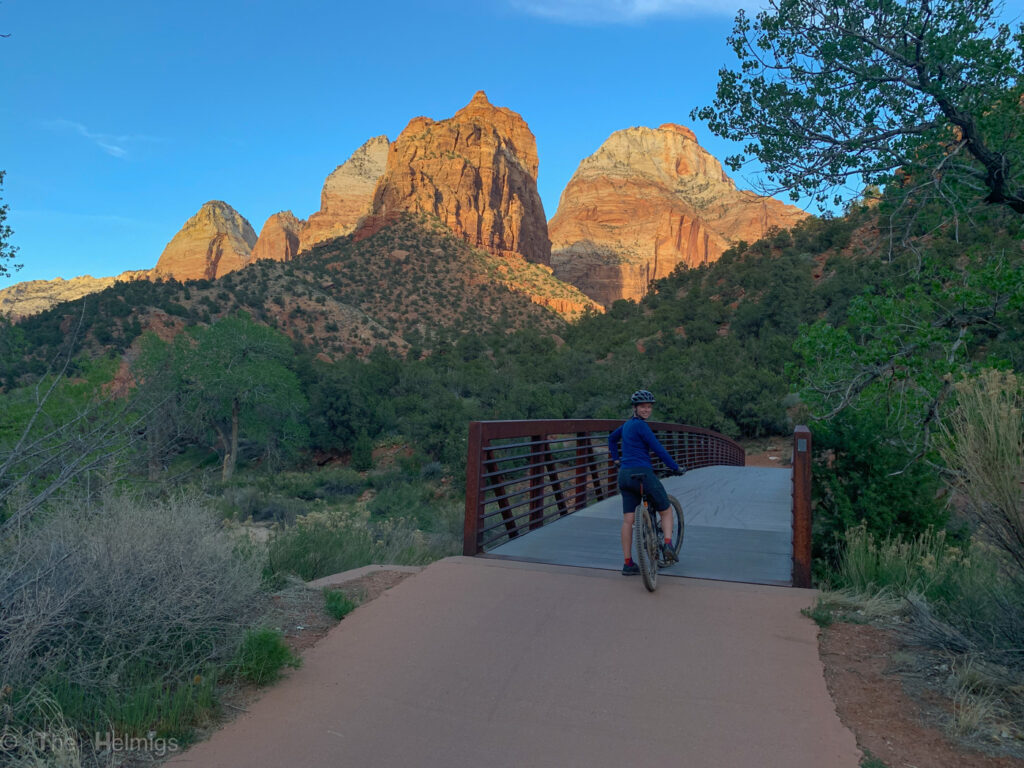 Likely the best thing we did while at Zion was head up the canyon for an evening bike ride. Since the canyon is shuttles only, there is basically no traffic – plus the shuttles stopped running at 7:15pm while we were there. We basically had the canyon to ourselves! It was a great way to explore and really gives you a sense of scale for the canyon.
