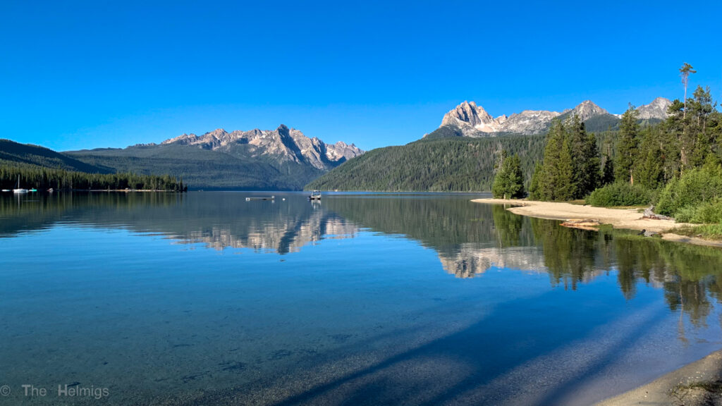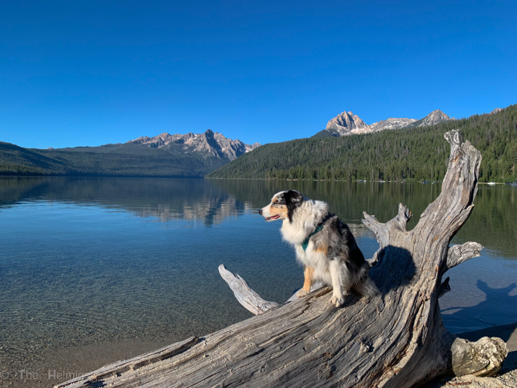 With another full work day needed for me, I wanted to sneak in a walk to Red Fish Lake in the morning of our second day. We heard that there was a dog beach there from our camp host, so we had to check it out. Seeing the lake in the morning before all the boats started up and the crowds descended was a smart decision. The lake was so quiet. Walking around the area, we could not believe how blue and pristine the water was. It’s amazing that this area isn’t a National Park.