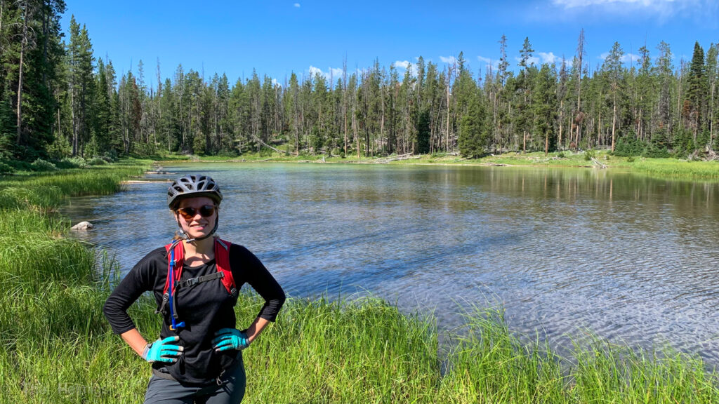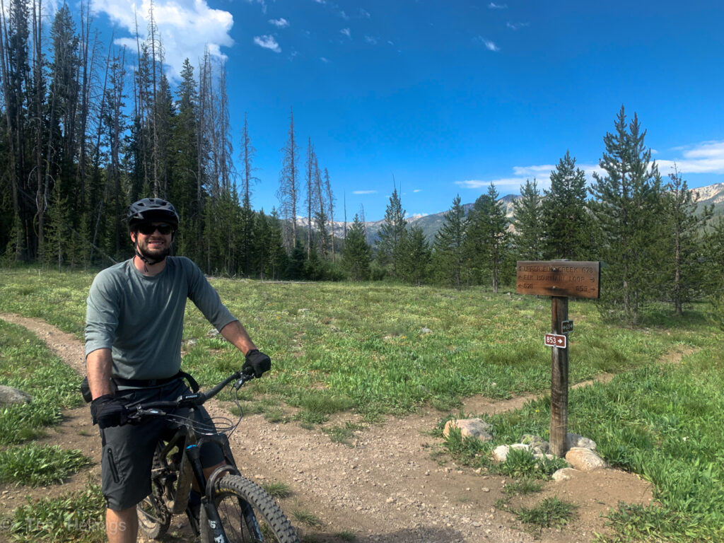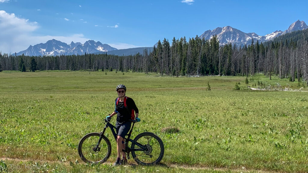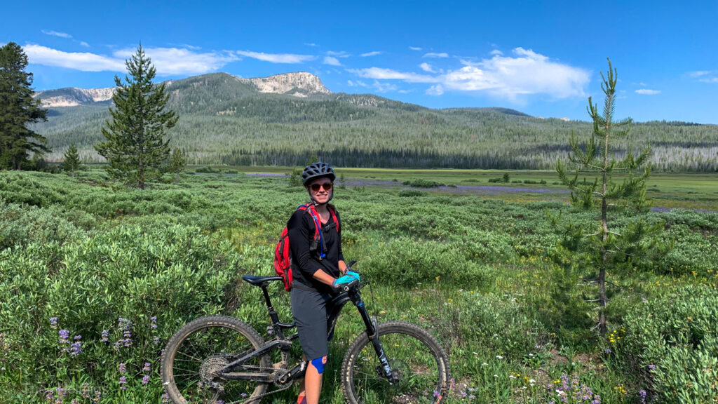 There is a ton of hiking around Stanley, but not that much in terms of biking. However, there was one trail near Stanley Lake that had really good reviews called the Elk Mountain Loop. We can confirm that this is an awesome trail! The bulk of the climbing was on a gentle, smooth dirt road and the downhill was rowdy enough for both me and Kyle. Then the views on the backside of the loop were unbelievable – wildflowers galore and the most serene alpine lake! If only we’d brought swimsuits and inflatable rafts…