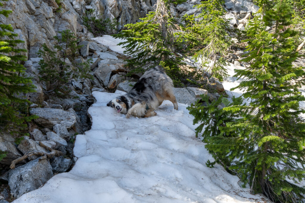 Since Moz did so well on Saturday, we thought we would do a bigger hike on Sunday up to Sawtooth Lake. This is the most popular lake hike in the area. Mozzie got to meet lots of people, dogs, and even GOATS. This was a first for us and Mozzie; she was very interested and puzzled by the non-dog animals on the trail (ha). Sawtooth Lake was beautiful, but we still think that Goat Lake was more scenic (and way less people is always a plus).
