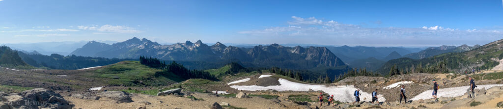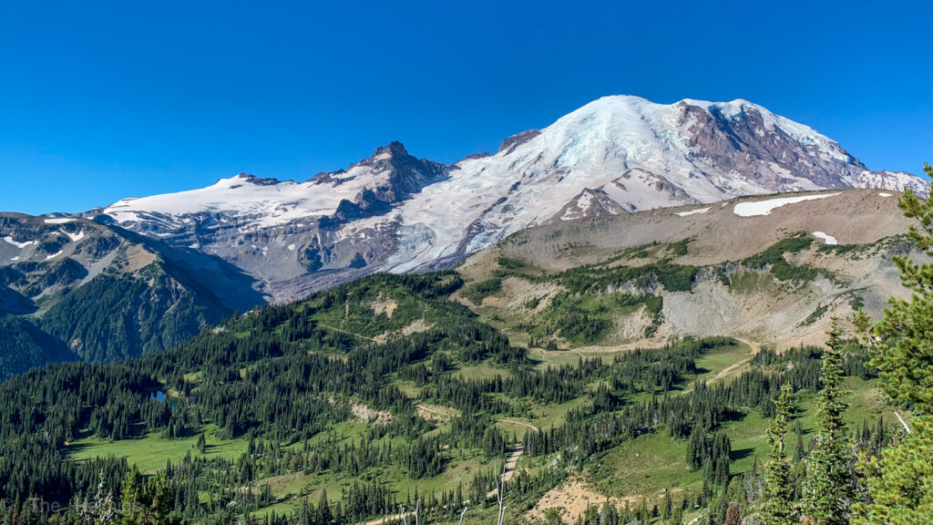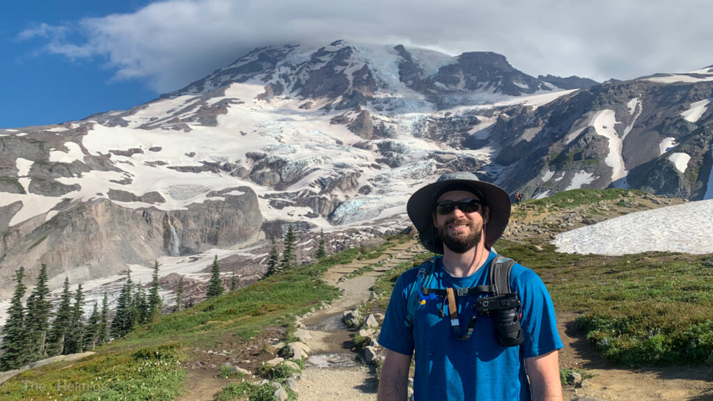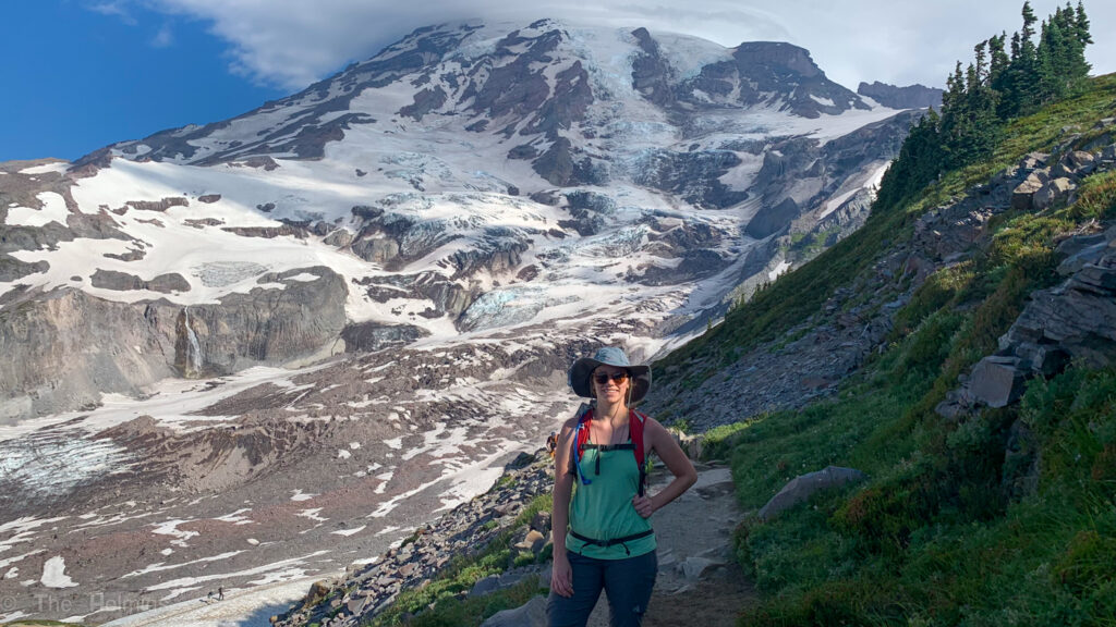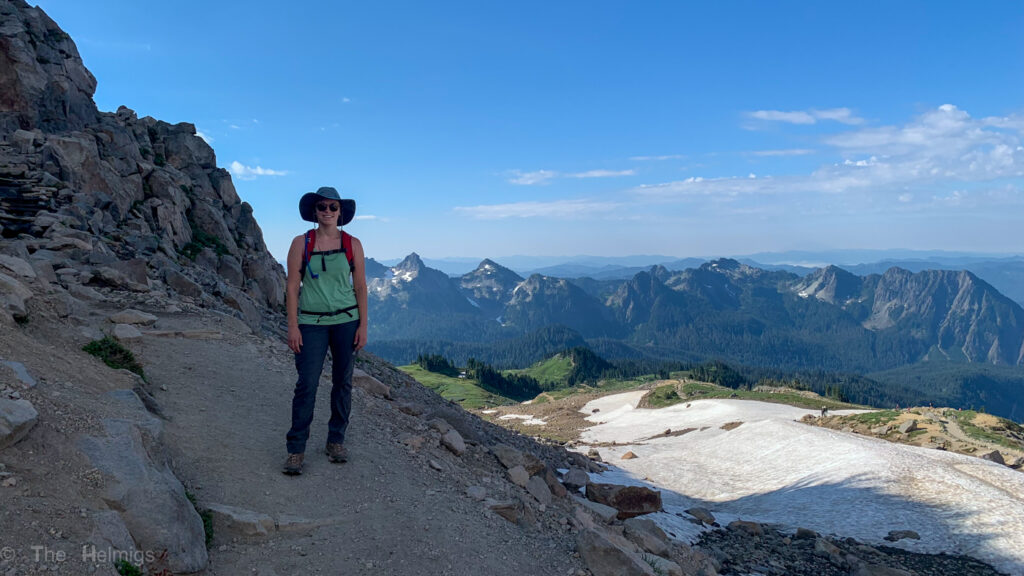 Our first day, I wanted to knock off the most well-known trail in the park: the Skyline Trail. We made the one hour drive to the Paradise Visitor Center. We like to get on the trails as early as possible to beat the crowds. That was definitely a good call here as even though we were early, there were still quite a few people out on the trails. The Skyline Trail gets you fairly close to Mt Rainier (the only way to get closer to the summit would be to actually hike to the base camp for it). The loop is around 5 miles with 1,500′ of elevation, and the views are jaw-dropping throughout.