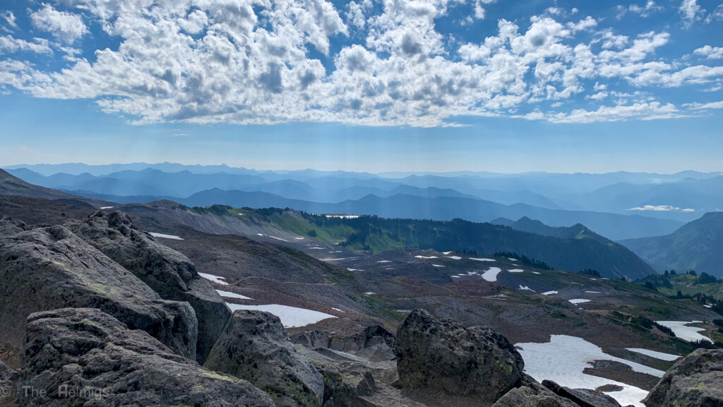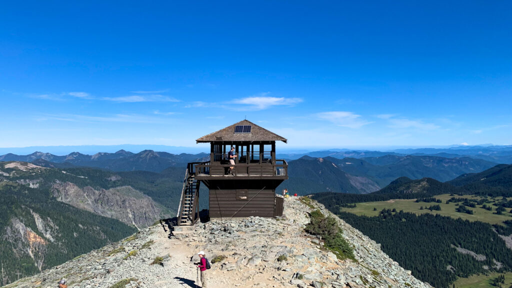Our last day in Rainier, we decided to squeeze in one more of the popular hikes – Mount Fremont! This was an absolutely fantastic hike. It was around 6 miles round trip with 1,000′ of elevation gain. It wanders along a ridge with a great view of Mt. Rainier and then dips around another high point to reach to Fremont Fire Tower Lookout. The 360 degrees views from the fire tower were spectacular!