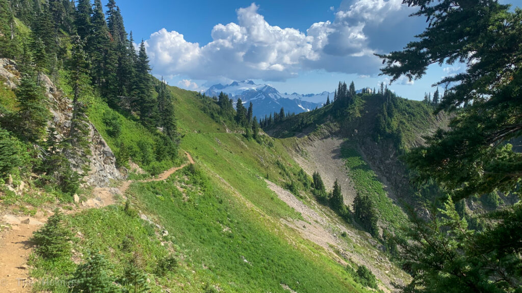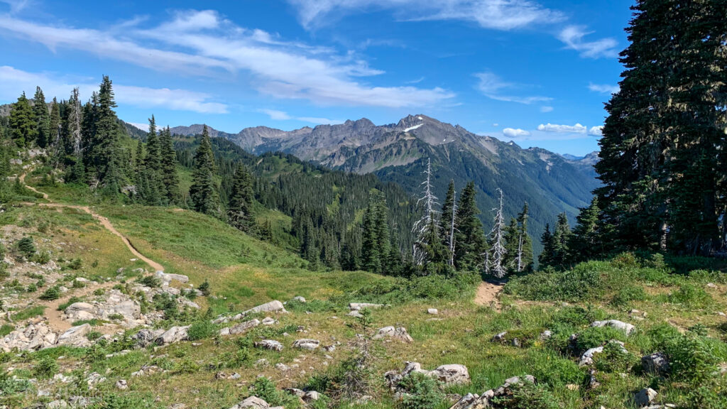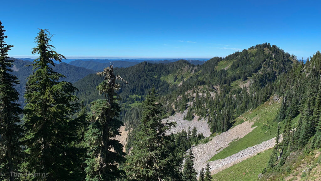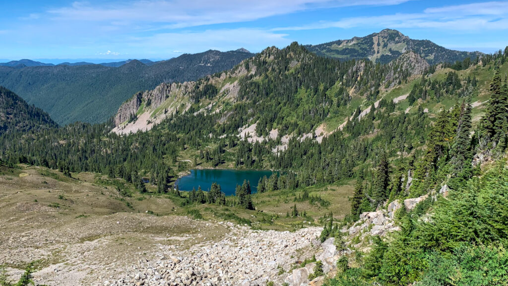 We decided that we wanted to experience the backcountry in Olympic National Park, so we kept our eyes on last-minute backcountry campsite cancellations and we both lucked out with some very nice spots on the High Divide/Seven Lakes Basin loop. I did my hike on Tuesday night and Andrea did hers Wednesday night. It was around 18-19mi total.