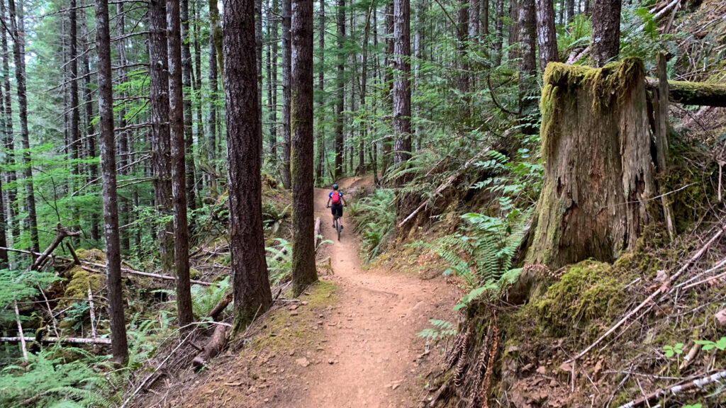 We had hoped to get out mountain biking more than once during our stay, but that didn’t happen due to the smoke/wildfires. That being said, our one ride at Whiskey Run was great. Some sections were amazing, especially in the north section where the trees were incredibly tight and the trail was machine-cut.